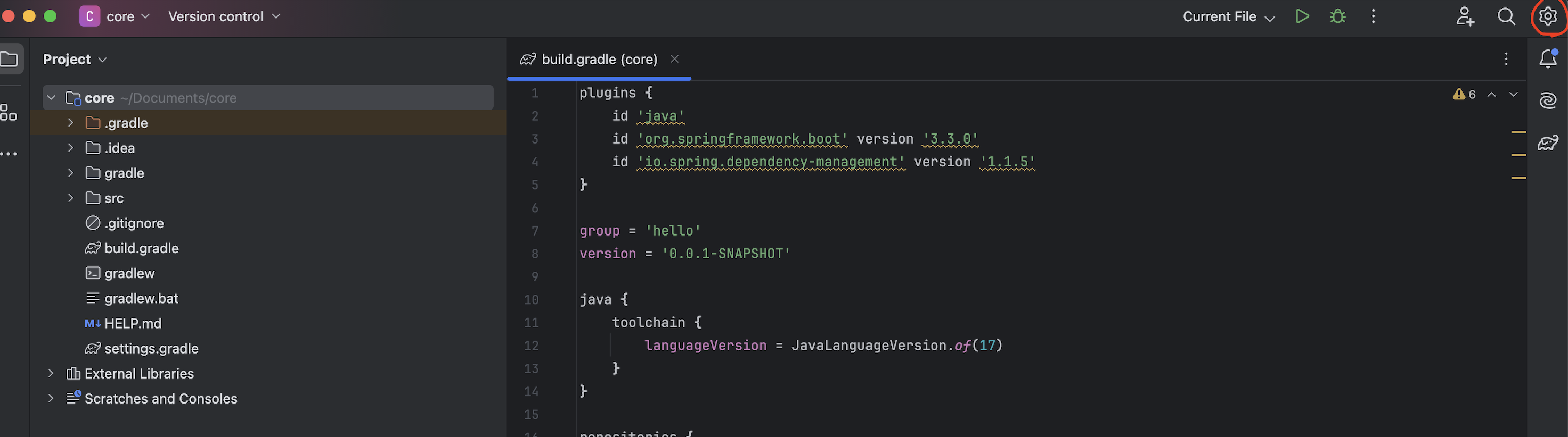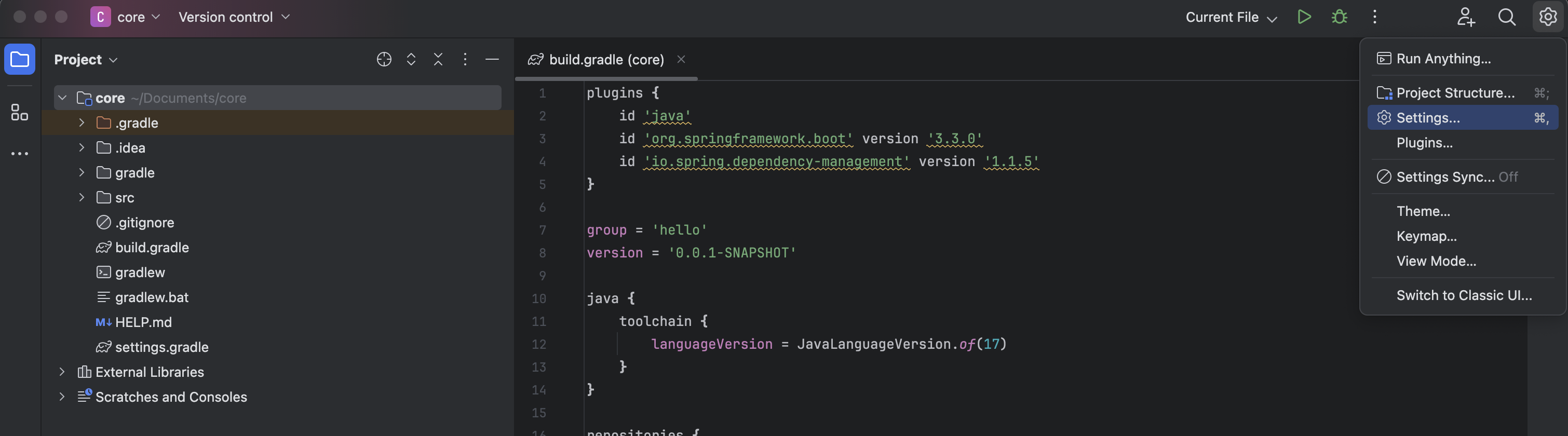 - 스프링 부트 환경설정 시 김영한 스프링의 경우 Gradle을 사용하기 때문에, Gradle JVM에서 자바 17버전을 선택해준다.