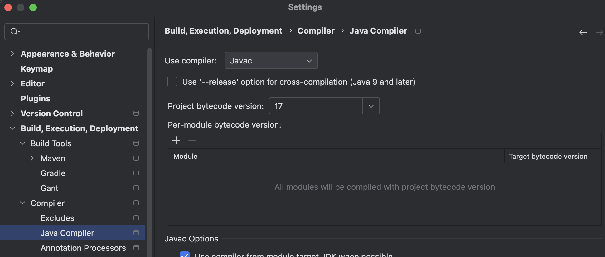 (4) Build, Execution, Deployment - Complier - Java Complier